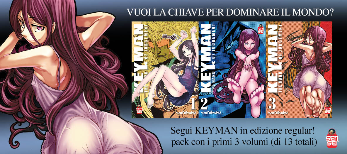 E' IL manga in uscita anticipata a Lucca Comics più atteso! Il genere ULTRAMANGA si arricchisce di un nuovo interprete grazie al primo grande successo di WARAINAKU, già autore dello sbalorditivo Zingnize! Inizialmente era nostra intenzione mantenere questa edizione un' esclusiva per le fiere. Ma dopo il grande successo di Lucca e alla Gamesweek, in moltissimi ci avete chiesto di poterla iniziare e di poterla acquistare anche nei canali ufficiali, così la decisione è arrivata: eccovi in tutta la sua potenza la powerful variant di Keyman. La serie inizierà la sua corsa nelle librerie e nelle fumetterie a gennaio e sarà INTERAMENTE DISPONIBILE ANCHE in edizione powerful!